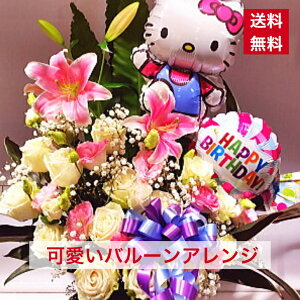 バルーン付きアレンジ 可愛い キャラクター かわいい ピンク系 送料無料 花 生花 バルーン 移転祝い 周年祝い 開店祝い 開院祝い フラワーアレンジメント フラワーアレンジ アレンジメント キティ キティー キティちゃん キティーちゃん商品id 05 ピンク 可愛い系 Cdm